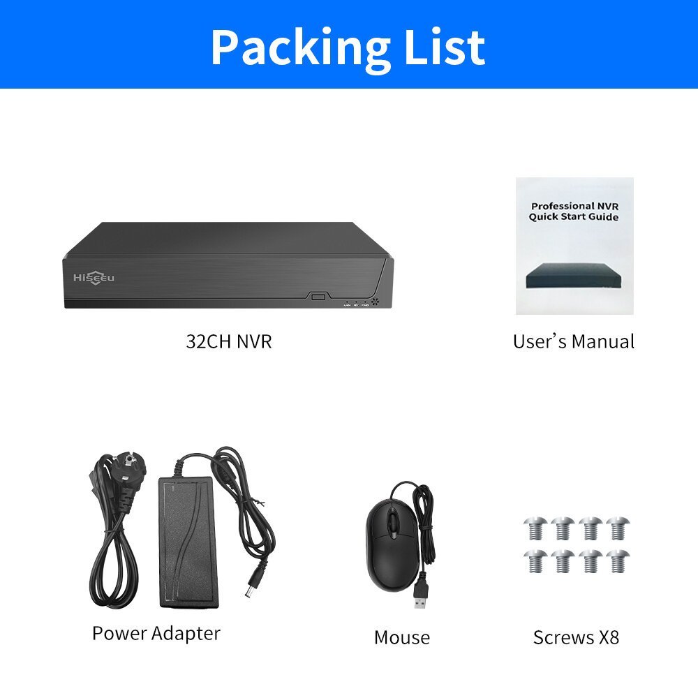 Hiseeu 32CH 2HDD 5MP 1080P 4K CCTV H.265 NVR DVR Мрежов Видео Рекордер ONVIF