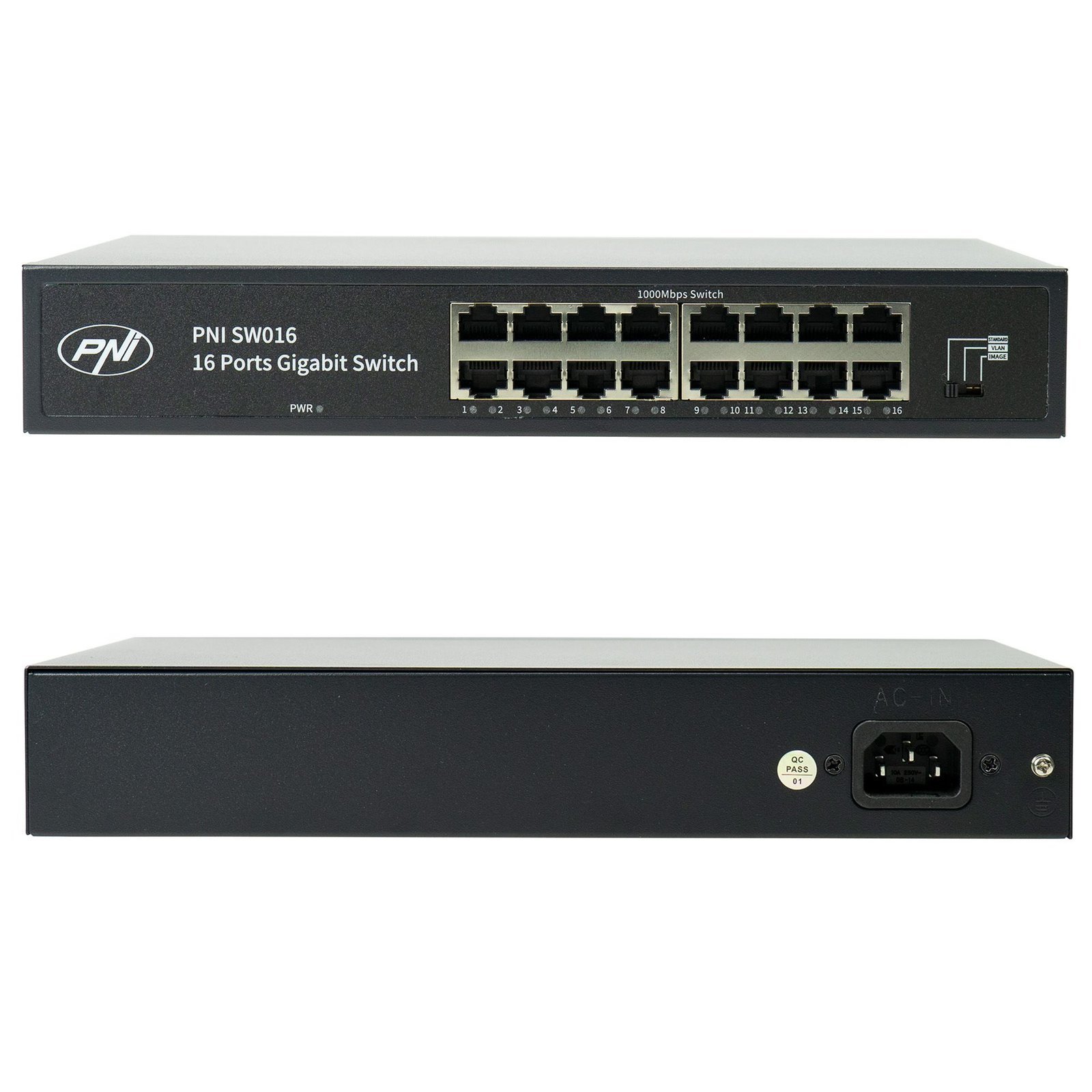 PNI SW016 е идеален за различни приложения, от домашни мрежи до малки и средни офиси. Може лесно да се монтира, осигурявайки максимална гъвкавост в конфигурацията на мрежата. Той е идеален за потребители, които се нуждаят от надеждно и ефективно решение за свързване на множество устройства като компютри, принтери, камери за наблюдение и друго мрежово оборудване.